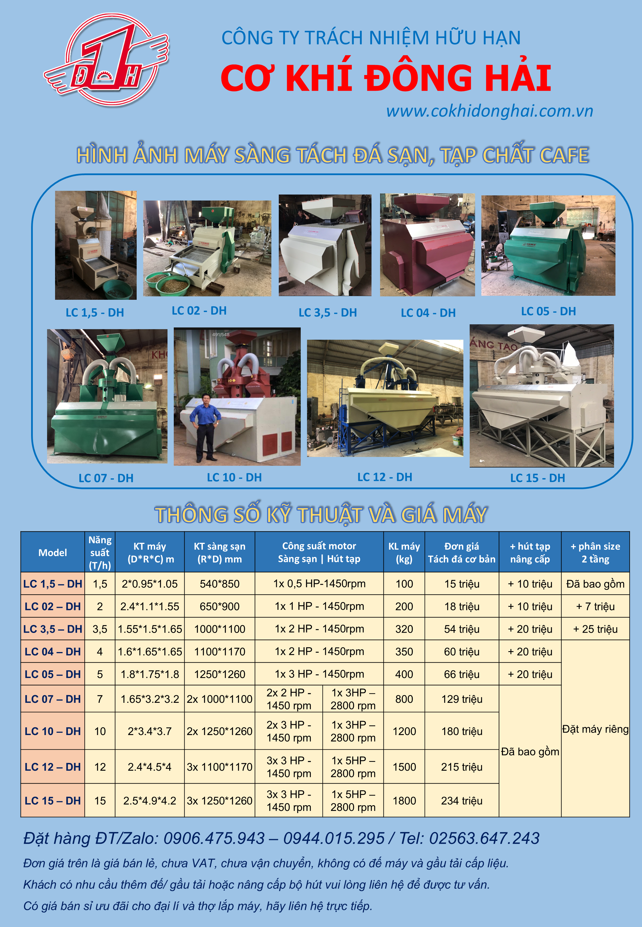Máy lọc sạn hạt cà phê 5 tấn/h hiệu Cơ Khí Đông Hải. Tel : 0906475943